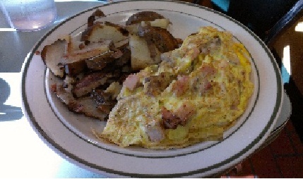 Two Club members selected the eggs and chicken fried steak breakfast. Both complimented the steak. The member who ordered poached eggs commented they were perfect and the yolk was not overdone. The other chicken fried steak eater ordered hash browns and felt they were more burned than brown. The third member of our party ordered an omelet with diced ham, mushrooms, onions, and cheese. It was fluffy and bursting with the fillings.