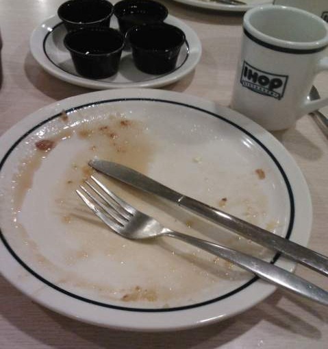 Early one morning the secret person and I made a quick jaunt to City Hall to clear up a legal matter and decided to eat breakfast afterwards. On a lark, we went to one of the International House of Pancakes (IHOP). The menus are large and cheery, the service is great, and the atmosphere is extra casual.
