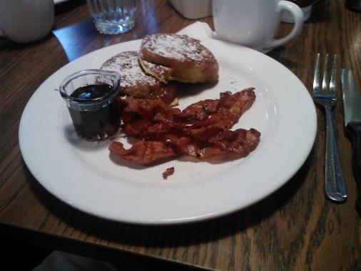 and bacon come with the French Toast breakfast. However, for some reason our server thought he had ordered a la carte. So with no eggs on his plate it did seem bare. However the Clubber was very pleased with his French Toast.