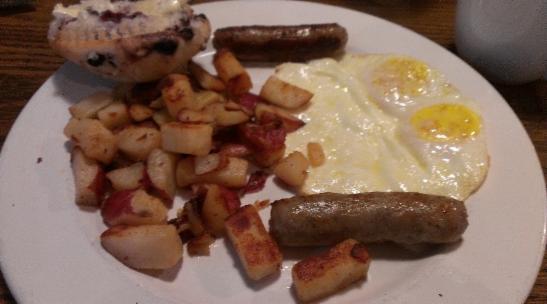 Club Member #2 ordered the Mardi Gras Omelette. While he said it was good there was a lack of enthusiasm for the dish. Our #3 diner ordered simple eggs, sausage, and potatoes breakfast. He found the eggs and sausage slightly warm while the potatoes were cold.