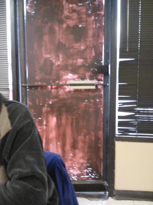 The ambiance is rather folksy with photographs on the wall and specials painted on the windows. We sat at table #25 in the back thinking it was a safe place to make our observations. Suddenly a part of the wall opened and gusts of cold air blew in. It was a door. The deliveryman delivered three stacks of stuff. We were sitting under the EXIT sign.