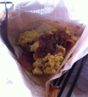 Tip; Proper way to eat this breakfast taco is to use a fork to eat the top part and then you will be able to eat the rest like a regular taco.