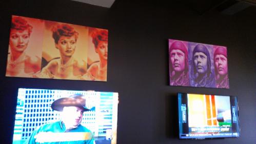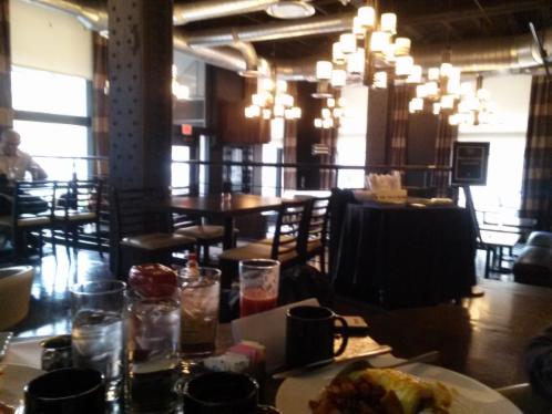This morning the fast breakers visited the Boiler Room in the Mayo Hotel. It is remodeled and is no longer the dark scary place it once was. It is open and fun with Andy Warhol style paintings and flat TVs on the walls. The servers wear chic black shirts that button up the side and have a Nehru collar with the Mayo logo on the left.