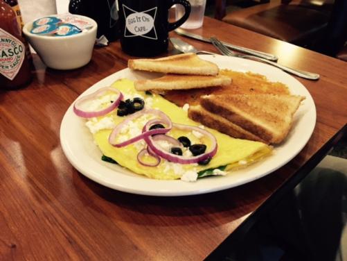 Our table hopping member is an expert in Greek cuisine and ordered the Greek To Me omelette. He enjoyed the dish filled with feta cheese and fresh vegies.