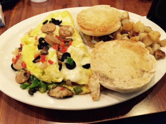 The Godfather was a menu offering he could not refuse for another Breakfast Club member. The plate sized omelette was brimming with Italian sausage and a variety of vegetables.